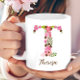 Esta linda caneca de café personalizada apresenta letra floral T e personalizada com seu nome em roteiro de caligrafia, ou cria um presente único para seus entes queridos.