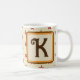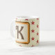 Este monograma de chá matinal ou caneca de café é uma forma excelente de adicionar um toque colorido à sua rotina matinal. Um padrão elegante de estrela rosa e vermelha aparece contra um fundo bege. A letra "K" aparece em um quadrado em ambos os lados desta caneca. A carta pode ser personalizada rápida e facilmente. Design original - C. McGouldrick