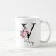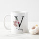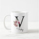 Caneca De Café Monograma Rosa Boho Floral Inicial V