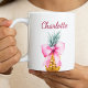 Caneca De Café Monograma tropical de Verão de ananás arco rosa