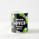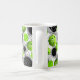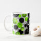Um copo de café do divertimento com um design moderno de pickleballs e de espirais verdes em um fundo branco de linhas circulares e retas pretas. Aperfeiçoe para aqueles que amam o pickleball. Você pode mudar o fraseio a qualquer coisa que você gosta. O estilo, a cor e a colocação de pia batismal podem igualmente ser mudados ao seu gosto.