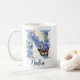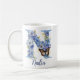 Uma caneca de café personalizada em tons de azul com borboleta coordenada, apresentando o monograma da letra "N". Personalize facilmente com seu nome ou crie um presente único para seus entes queridos. Espaço suficiente para adicionar uma citação ou mensagem adicional ou até mesmo um fundo. Esta caneca também vem em diferentes estilos e combinações de cores. Navegue pela coleção para ver exemplos deste tipo de fonte nos diferentes estilos e tamanhos de xícara.