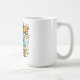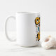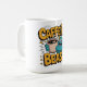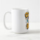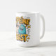 Um monstro engraçado bonito segurando uma xícara de café gigante.
