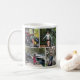 Memórias de fotos em uma caneca de café. Quatro fotografias para fazer uma montagem. Mude as imagens para criar a sua própria montagem de quatro imagens.
