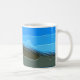 Um desenho abstrato azul vibrante de um topo de montanha e do céu.