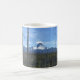 Um belo dia ensolarado no final de setembro de 2017. Vista do Monte Washington enquadrada por árvores e belo céu azul. A neve que cobre o topo e abaixo é o que restou de um recente incêndio florestal, mas já há verde crescendo de volta!