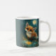 A sweet, wide‑eyed fox sits beneath a glowing yellow moon, surrounded by soft blue night tones and gentle wisps of grass. The illustration blends warm orange fur with cool, dreamy colours, creating a cosy, magical woodland atmosphere. Perfect for anyone who loves whimsical wildlife art and serene nighttime scenes.
