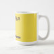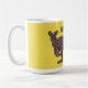 A caneca de café apresenta silhueta de canguru em um padrão de mosaico original em fundo amarelo com "Austrália" em texto de estilo verde