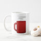 Esta caneca tem uma caneca para esclarecer que é realmente uma caneca e não uma xícara.
