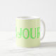 Uma caneca elegante e divertida com a saudação francesa para "Olá/ bom dia" em uma nova e vibrante fonte verde moderna. Aproveite.