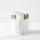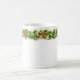 A caneca de café cerâmica de Natal é mostrada com uma festiva festiva terra natalícia de abeto, com impressão de conchas e fitas vermelhas. Personalize este item ou comprar como está. Imagem de estoque