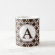 Um elegante padrão marrom de chocolate enfeita esta caneca de café monograma de na moda. Personalize esta caneca alterando a letra do monograma. O design é da arte original.