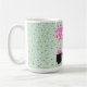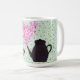 Bule e xícara com nuvem de coração ascensão no vapor. Múltiplas formas e tons de corações vermelhos e cor-de-rosa que se erguem numa nuvem de vapor em forma de coração. Trabalho de arte por Deanna Pendrick.