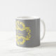 Mug Chic Damask Elegante e sofisticado, com fundo de cinza macio e um ornamento na moda amassado, floresce em amarelo. Esta design moderna é fácil de personalizar com o seu próprio texto. Clique em "Personalizar" para encontrar mais opções de personalização.