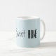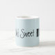Fundo azul claro com cinza preto, com letra escrita à mão, com a menção "Home Sweet Home" | Café Mug. Procure esta e outras palavras e citações da Farmhouse Living.