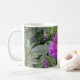 Este jardim de dahlias roxas vai iluminar seu dia enquanto você aprecia sua bebida.