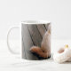 Esta clássica caneca branca foi desenhada com a minha foto de Amber, um gato persa branco e ferrugem numa varanda.