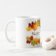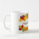 A caneca de café mostrada com o outono de Ação de Graças deixa impressão. Personalize este item ou comprar como está.