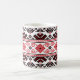 Impressão do bordado nacional ucraniano na caneca. Ornamento vermelho e preto clássico ucraniano.