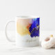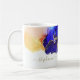 Invigorante do índigo azul e ametista amontoado com laranja e ouro. Personalize esta arte abstrato exclusiva com um nome; para si próprio ou como presente. Brilhe o dia com estes belos tons legal de verão. Mug De Café Azul Com Tinta Azul Personalizada. Arte original da artista internacional Pauline Benjes.