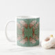 Este café Gingko Leaf ou uma caneca de chá é perfeito para o seu artesão Bungalow, Woodland Cabin ou Lodge. A folha Gingko é um clássico design de Artes e Artesanatos. O fundo verde neste azulejo é único por causa da textura de desvio como cobre martelado. O vidro das folhas é uma vidraça metálica de cobre da Itália. Esta imagem vem de azulejos feitos à mão que foram usados em muitas lareiras e backplashes. Procure os itens de cozinha e jantar correspondentes na coleção. Esta design vem de azulejos reais, do azulejo de Oregon Fay Jones Day.