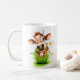 Uma caneca de café cerâmica mostrada com um impressão de vaca doce. Tamanho mostrado em 11oz Personalize este item ou comprar como está. Imagem do stock