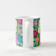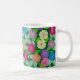 Geranium Flowers Coffee Mug. Mão pintada e desenhada de flores de gerânio numa caneca de café com fundo verde profundo. Design brilhante e colorido e parte de uma coleção.