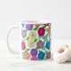 Mug de café da Flor de Gerânio com fundo branco. O trabalho artístico original desse design foi desenhado à mão e pintado com tinta acrílica. Esta caneca faz parte de uma coleção com cinco outros fundos coloridos disponíveis.