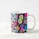 Mug de café da Flor de Gerânio com fundo roxo escuro. Trabalho de arte desenhado à mão e pintado redesenhado para esta coleção