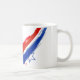 4 de julho Esta caneca de café cerâmica é mostrada com um impressão gráfico patriótico vermelho, branco e azul de estrelas. Personalize este item ou comprar como está. Imagem do stock freepik.com