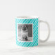 Uma caneca de fotos personalizada e bonita, com um plano de fundo azul brilhante e padrão de distribuição branca. Adicione seu próprio toque pessoal a uma caneca adicionando fotos de seus filhos, animais de estimação e outros membros da família.
