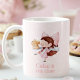 Comece o seu dia com um pouco de doçura com esta adorável caneca de Bolo e Chá Time! Apresentando um fundo pastel cor-de-rosa com bolinhas brancas e uma charmosa ilustração de um chá e bolo de carregando feminino, essa caneca é perfeita para amantes de chá, bebedores de café e qualquer um que aproveite momentos confortáveis. Uma adição agradável à sua cozinha ou um presente pensativo para aniversários, festas de chá ou ocasiões especiais.