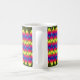Formas de diamante em filas. Cada fileira de diamante captura as cores do arco-íris (verde, amarelo, laranja, vermelho, rosa, roxo, azul), filas alternativas sacudir a ordem das cores, com a banda amarela correspondente em cada fileira.