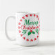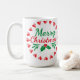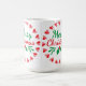 A caneca é enfeitada com um fundo com tema de inverno, como pinheiros de neve ou uma lareira acolhedora. O texto "Feliz Natal" aparece de forma proeminente num guião elegante e giratório, com cores festivas como vermelho e verde. Ao redor do texto, pequenos detalhes como flocos de neve, folhas ocas ou estrelas cintilantes adicionam um toque festivo. Para uma reviravolta divertida, inclua personagens bonitinhos como Papais noeis, renas ou um boneco de neve espreitando pelos lados. A maçaneta poderia ser projetada para se assemelhar a uma cana doce, acrescentando ao espírito de feriado.