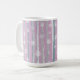 Sip in rustic charm with the Gingham Orchard Mug. This cozy and whimsical design features vertical brushstroke stripes in soft shades of pink, gray, and blue, layered with white gingham silhouettes of apples and flowers. The combination of painterly textures and classic gingham patterns creates a nostalgic yet modern feel — perfect for mornings, study breaks, or gifting.