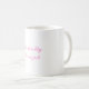 Caneca clássica com a frase "bonito demais para um trabalho" em caracteres cor-de-rosa. Projetada para uso cotidiano, esta caneca é perfeita para café, chá ou qualquer bebida escolhida. Uma adição divertida e na moda à sua vida cotidiana ou um presente único para amigos e familiares.