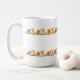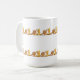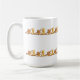 O suporte com "ferro em formas brutas" é replicado em duas filas na parte inferior e superior da caneca. A imagem é tons de ouro e marrom.