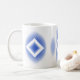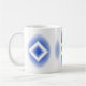 As formas em losango com centro sólido e esmaecendo em branco nas bordas são posicionadas sobre ovais azuis. Pequenas ovais verticais separam a imagem final do diamante central na faixa azul. Altere a cor do plano de fundo para sua escolha (o padrão é azul).