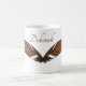 Pena com barbas marrons fazer a vana. Duas penas cruzadas na base do desastre (eixo). As pontas das penas sobem para a direita e para a esquerda do centro. Entre as penas está o nome que você edita.