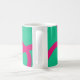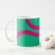 Modern mug featuring bright pink curved lines on a deep green background. Vibrant and unique, perfect for creative spirits who love color and originality.