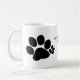 Impressões de duas patas de polidactilo (patas com múltiplos dedos - esta tem sete) de cada lado da caneca. Texto entre "Meu gato Polydactyl me ama"