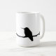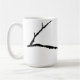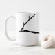 O beija-flor sentado no galho da árvore nua. A silhueta preta envolve a caneca.
