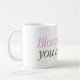 A mug with a colorful text Bloom where are you alive. Perfect for personal use for a nice tea party, or as a gift!