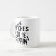 A caneca engraçada de Halloween tem uma tipografia negra moderna e simples com sotaques específicos do Halloween. Há uma bruxa, um fantasma e uma árvore assustadora.