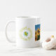 Uma caneca mágica com afirmações positivas à revisão a fim começar um dia bem sucedido.