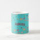 Colorful whimsical pattern with hearts, candies, cookies and modern red name decorate this whimsical turquoise 11oz classic coffee mug. Large capacity for hot or cold beverages. Ideal early December gift for a teacher. Easily change the name to make it yours using the Template provided. Also available in 15oz and other mug styles. See "About This Product" for more information.