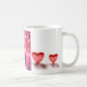 Namorados Mug Um encantador ursinho vermelho sentado em frente a um pano de fundo brilhante, em forma de coração. Os tons vibrantes, rosa e vermelho, aliados a reflexões de luz e corações flutuantes misturadas a cinzas, criam uma atmosfera sonhadora e romântica. Perfeito para temas do Dia do Namorados, projetos inspirados no amor e coleção de presentes.