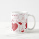 Uma caneca projetada com dois nomes de padrão de namorados, vermelha em branco. Personalize a caneca com seus nomes de coração, cor de fundo, entre outras opções.