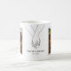 Uma caneca de dia de os namorados casal bonita com desenho de linha de um casal com as mãos na mão, duas fotos para você substituir por sua, os nomes dos casais e o ano estabelecido.