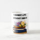 Eu não consigo viver sem o livro de livros Lover Mug Uma ilustração original de livros antigos e raros em cores mutadas com espinhos dourados, como se estivesse vendo uma prateleira em uma biblioteca antiga. Linhas de texto personalizáveis podem ser personalizadas, mas são mostradas com a célebre citação de Thomas Jefferson, "Eu não posso viver sem livros." Uma caneca adequada para qualquer amante de livros, estudioso, bibliotecário, professor ou aluno que ame livros e leitura.